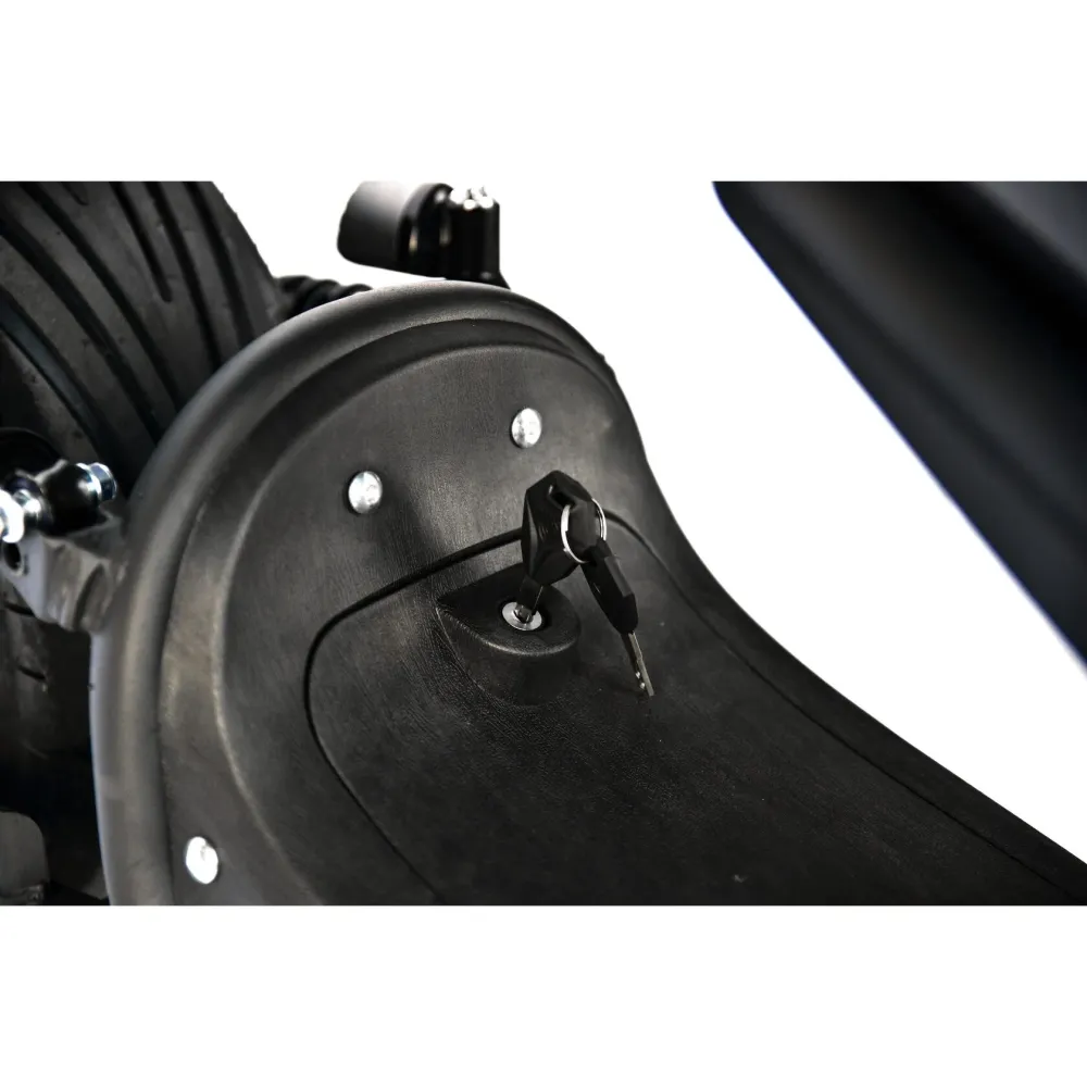 Двухместный байк оснащен яркой светодиодной фарой, задним стоп-фонарем и поворотниками. Наличие зеркал заднего вида и дисплея с параметрами вольтажа увеличивают степень безопасности тс. Из других дополнительных элементов производитель выделяет держатель для телефона, клаксон и светоотражатели. В совокупности техника комфортная и безопасная. Для заказа мощного байка сейчас предлагаем сделать телефонный звонок менеджеру интернет-магазина.