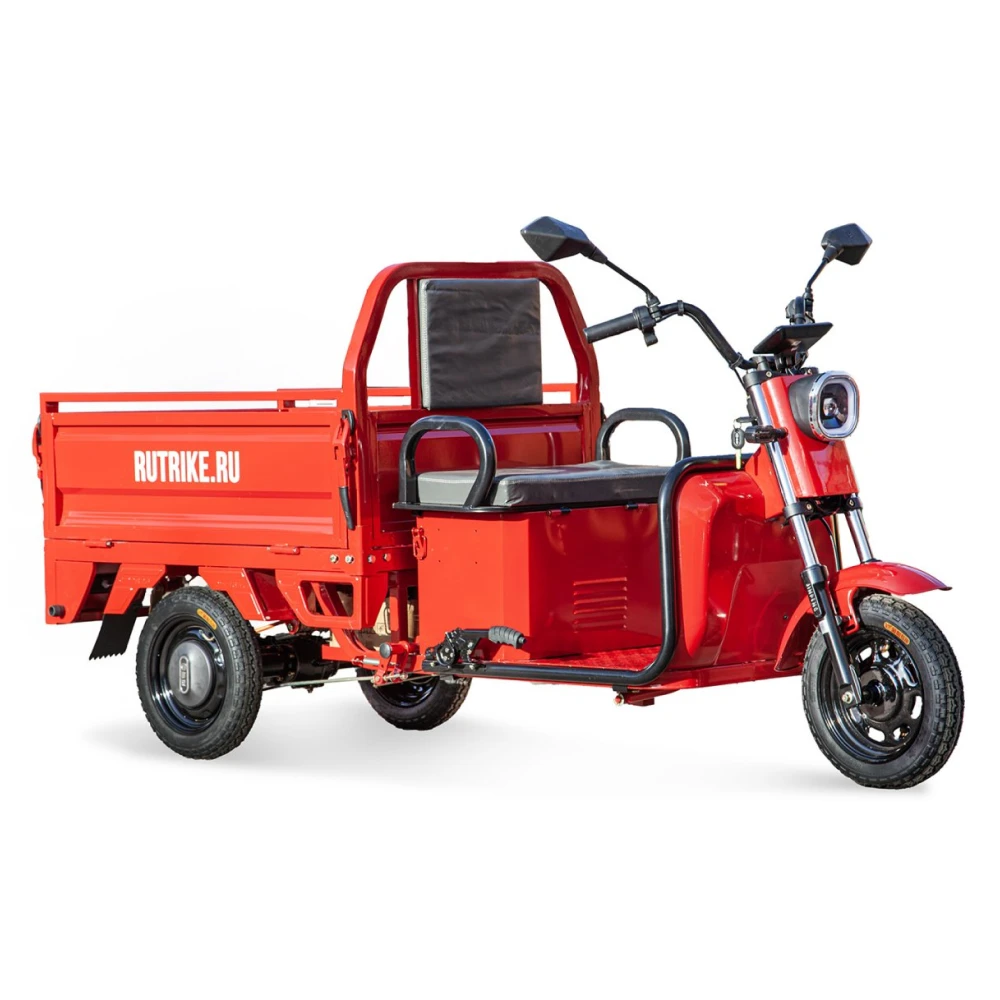 Грузовой электротрицикл Rutrike Амулет 1100 в ярком красном цвете - это надежное и эффективное средство для перевозки грузов. С его помощью вы сможете легко и удобно доставлять товары на небольшие расстояния.