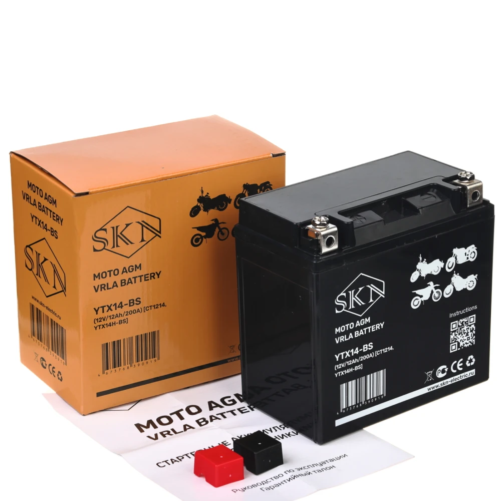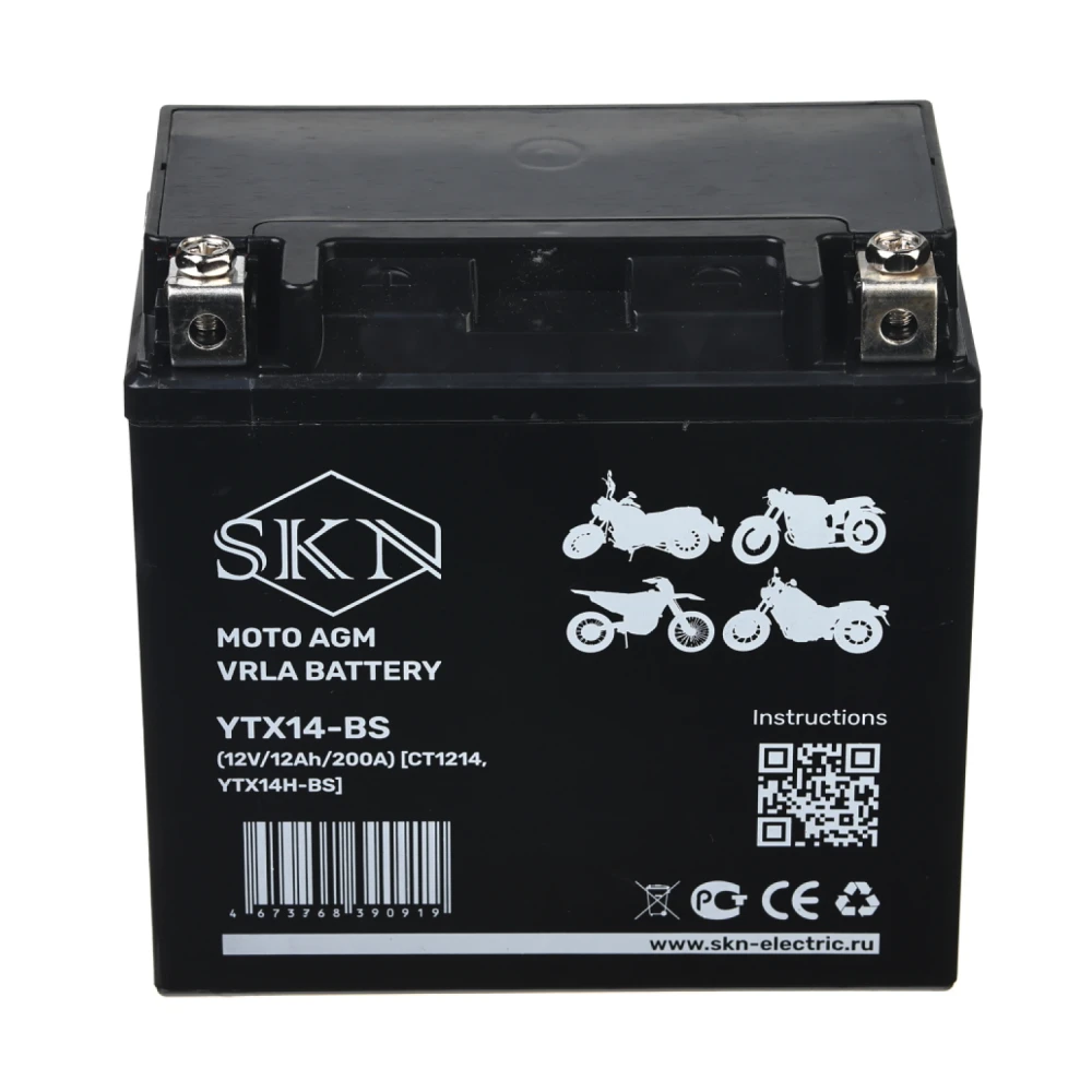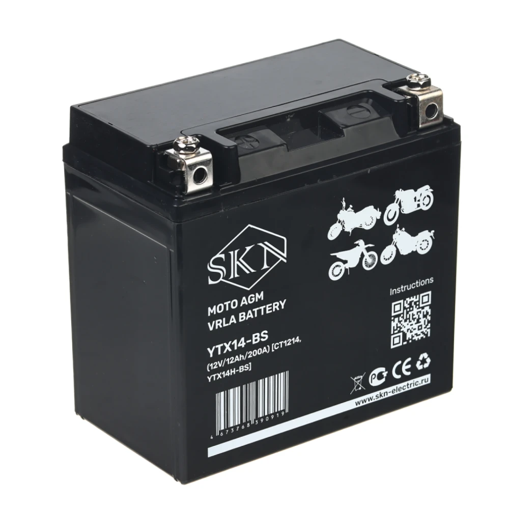 Аккумулятор стартерный для мототехники SKN YTX14L-BS (12V/12Ah/200А) [CT1214, YB14L-A2]