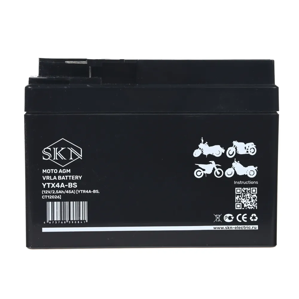 Аккумулятор стартерный для мототехники SKN YTX4A-BS (12V/2,5Ah/45A) [YTR4A-BS, CT 12026]