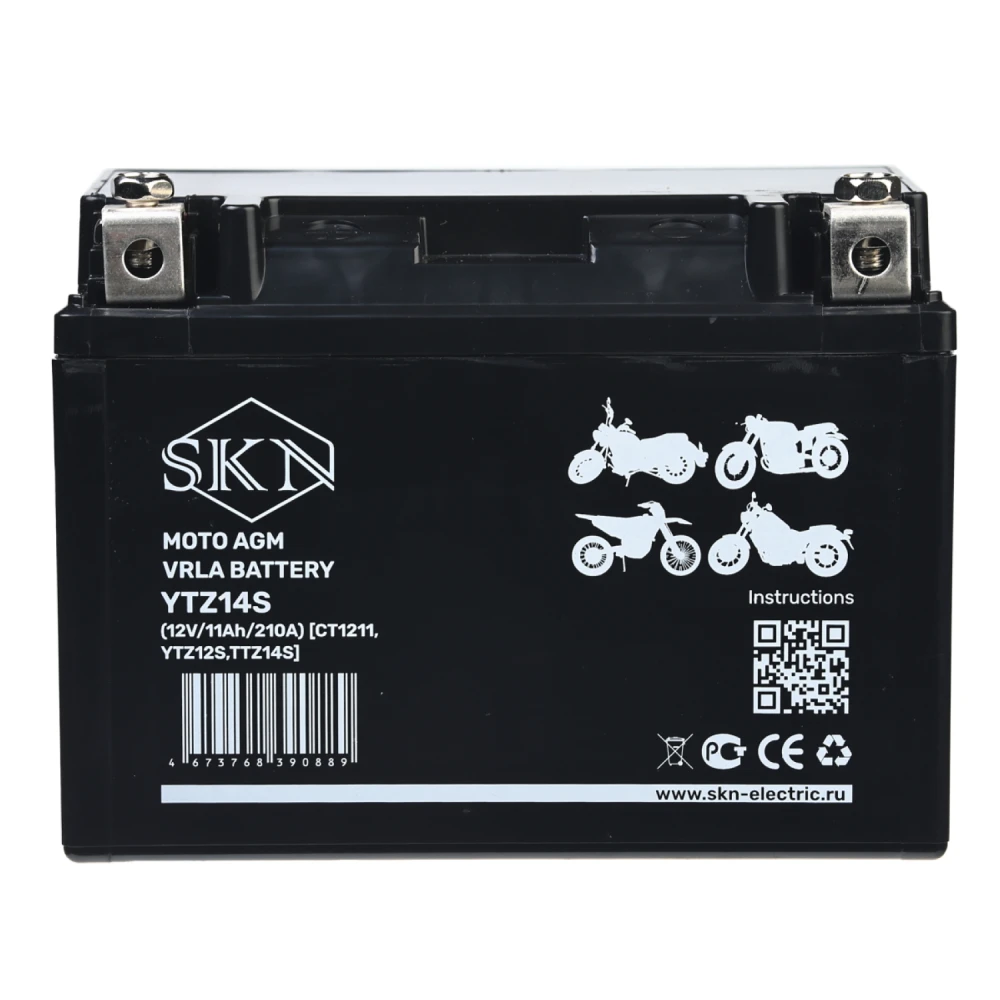 Аккумулятор стартерный для мототехники SKN YTZ14S (12V/11Ah/210A) [CT 1211, YTZ12S,TTZ14S]